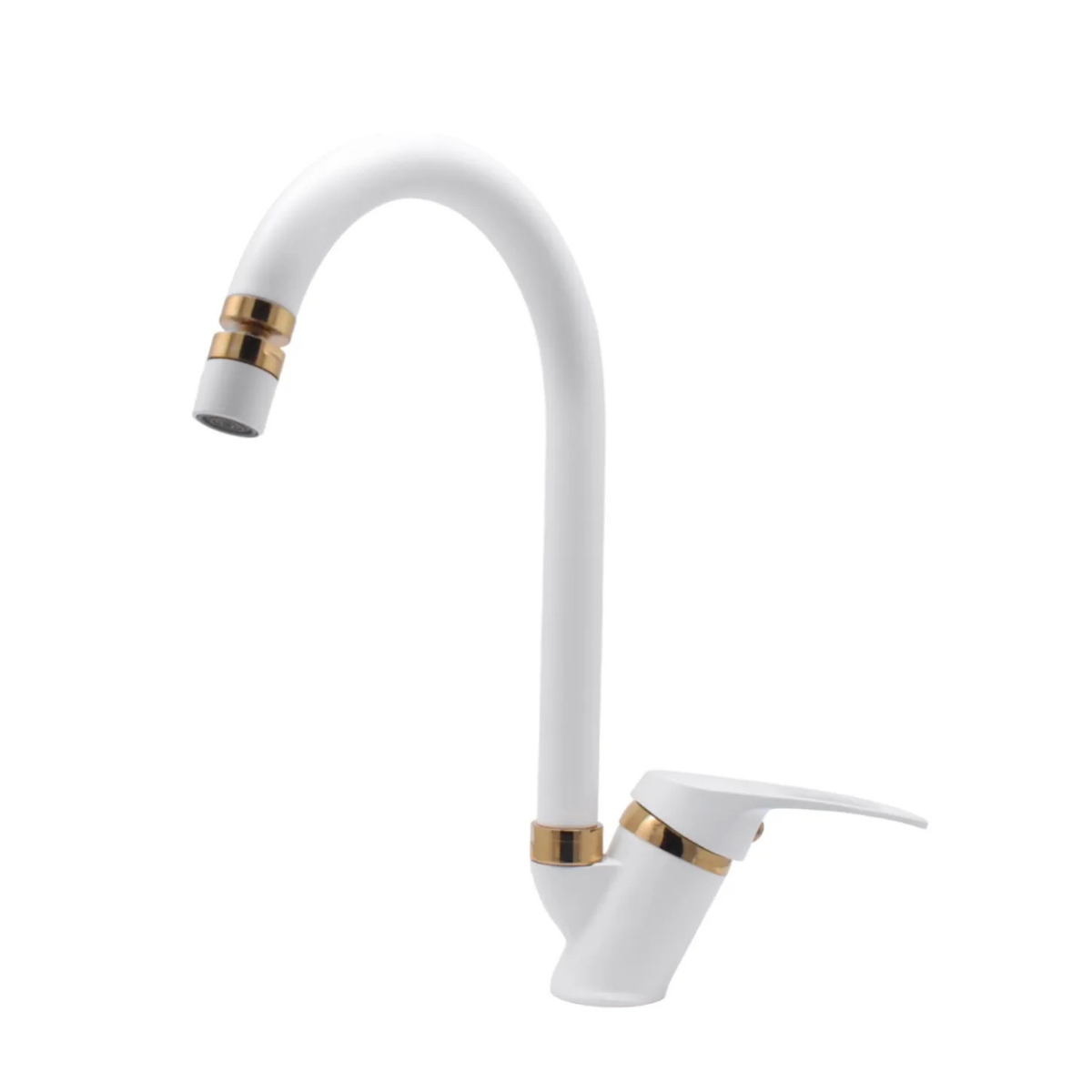 - 180 derece döner pirinç oynar musluk başlığına sahip.