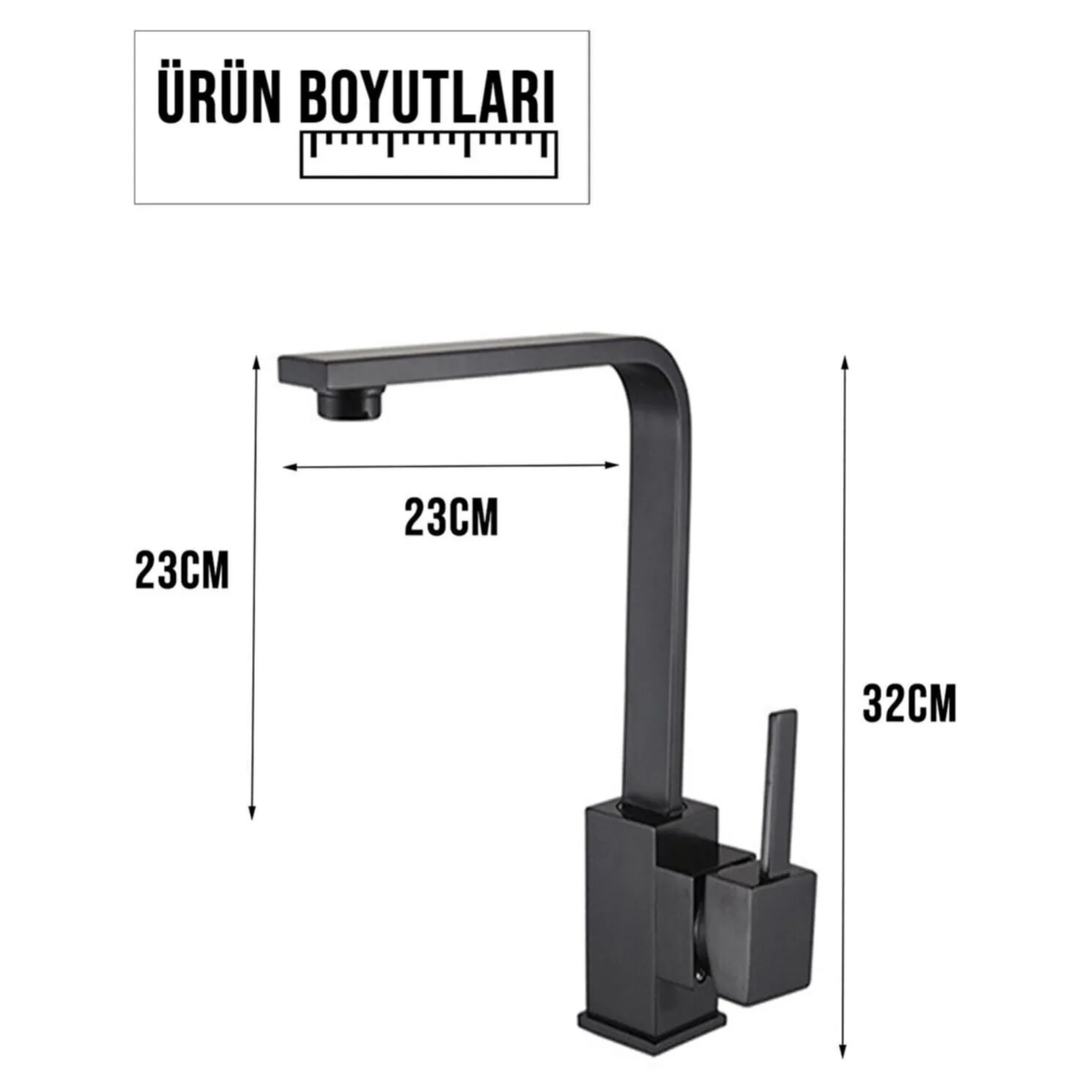 Mat Siyah Mix Kare Mutfak Evye Bataryası Aç Kapa Garantili Mutfak Dekoratif Musluk