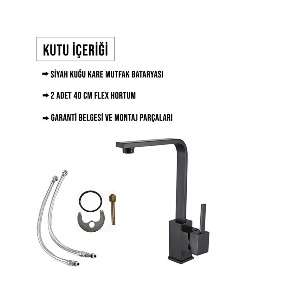 - Mat Siyah Mix Kare Mutfak Evye Bataryası Aç Kapa Garantili Mutfak Dekoratif Musluk