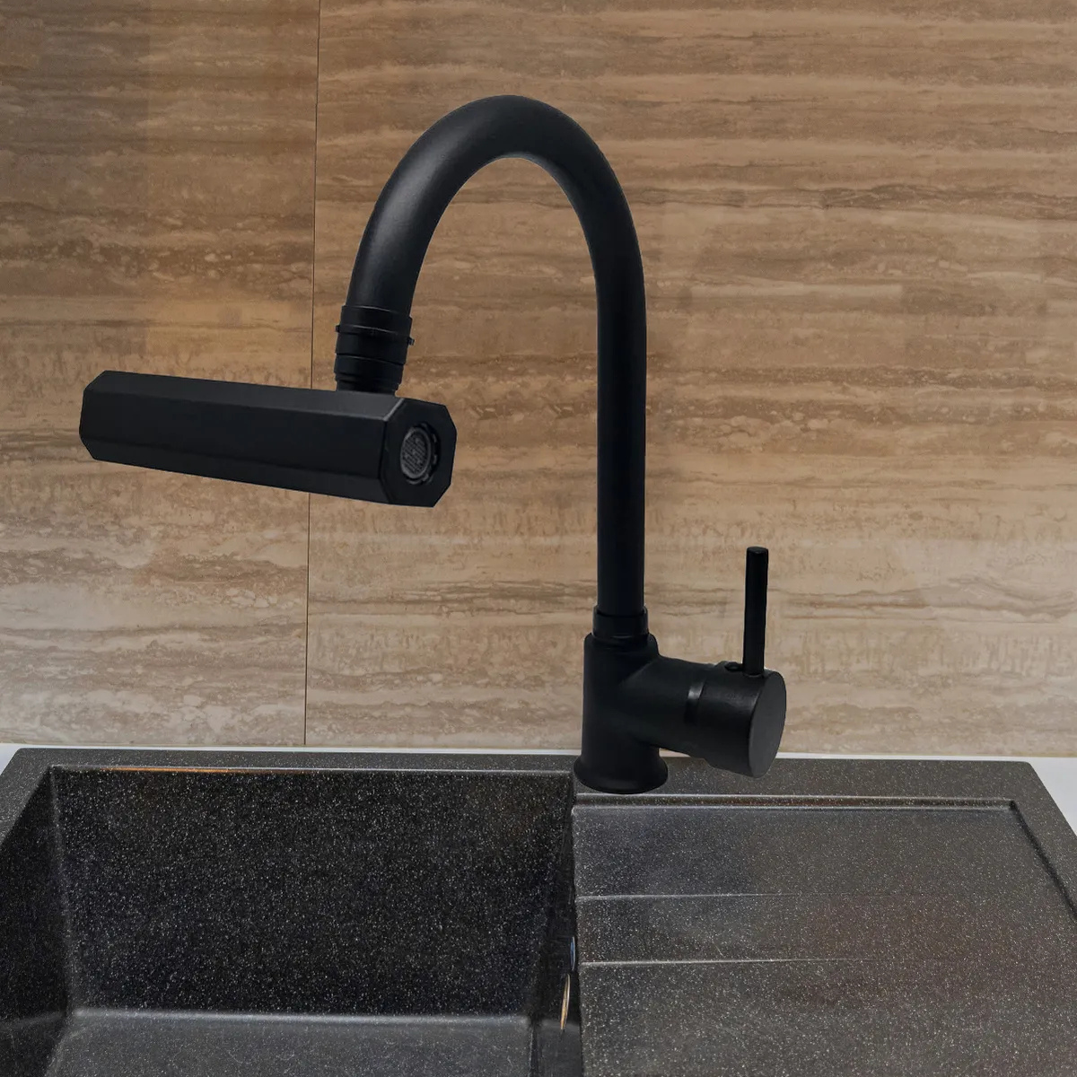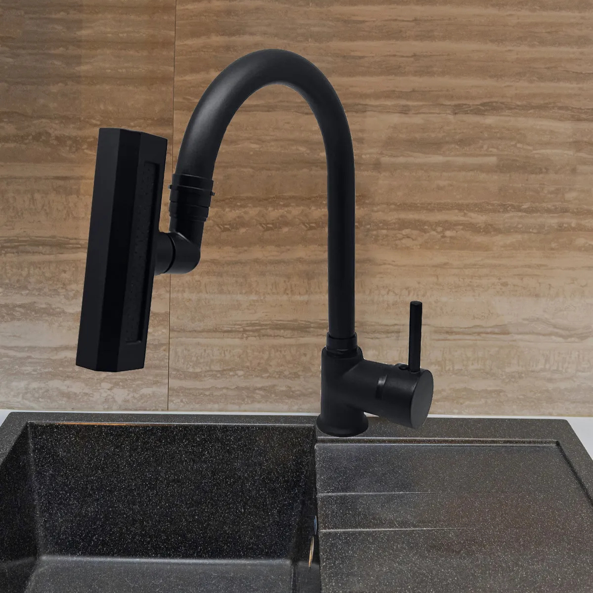 Şelale Siyah 4 Fonksiyonlu Oynar Başlıklı Mutfak Eviye Bataryası