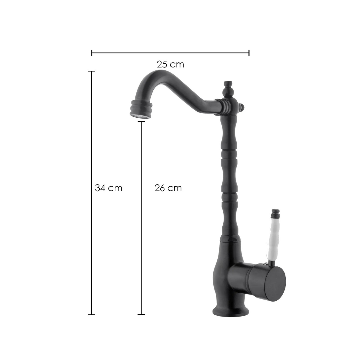 - - Siyah rustik tasarımıyla mutfaklarınıza şıklık katan porselen kollu aç-kapa eviye bataryası, modern ve estetik bir görünüm sunar.