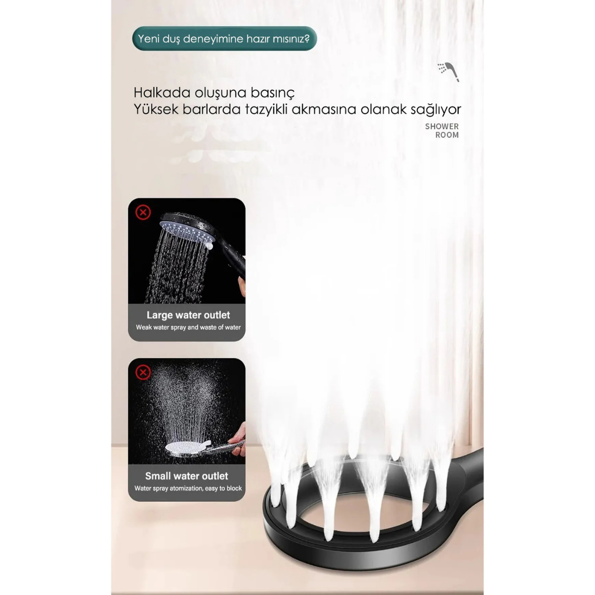 Super Sonic Su Tasarruflu Siyah Turbo Jet Banyo Duş Başlığı El Duşu